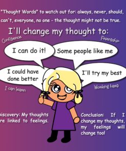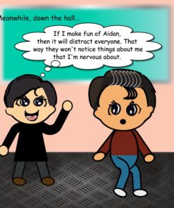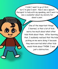 Aidan gets nervous about speaking in class and has anxiety about being bullied. Sophia doesn’t like trying new things and has a lot of symptoms of anxiety. Hailey lets little thoughts become big worries.